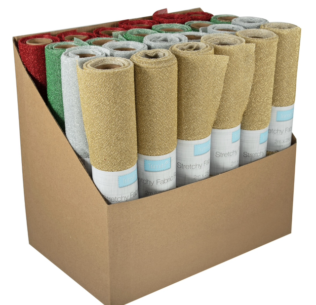 Fabric Rolls: Stretchy Sparkle: 2m x 28cm: 24 Rolls: Available in 4 Colours