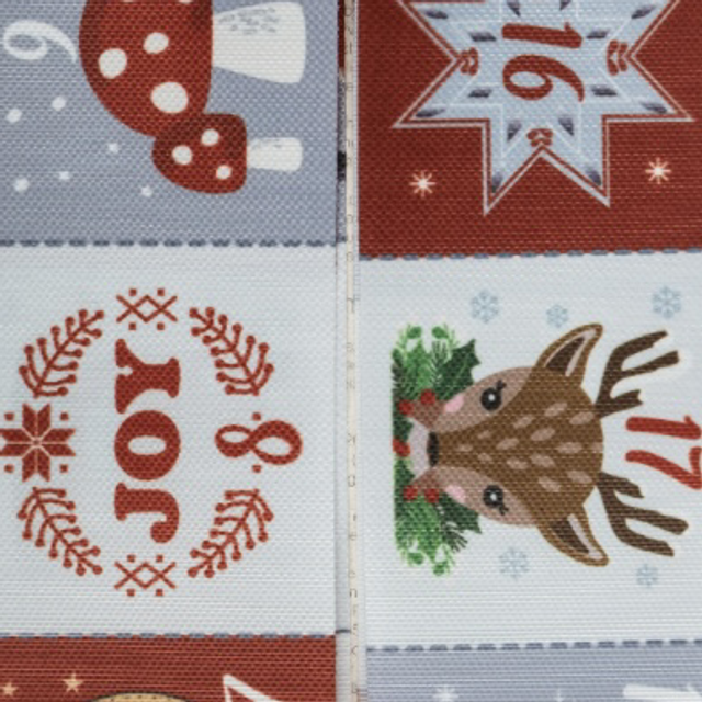 Make your own Advent calendar using this festive grosgrain ribbon exclusively designed at Groves. Simply cut along the dotted lines, fold over the edges and sew or glue onto your desired base fabric to create a Christmas heirloom. Composition: polyester.